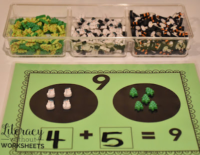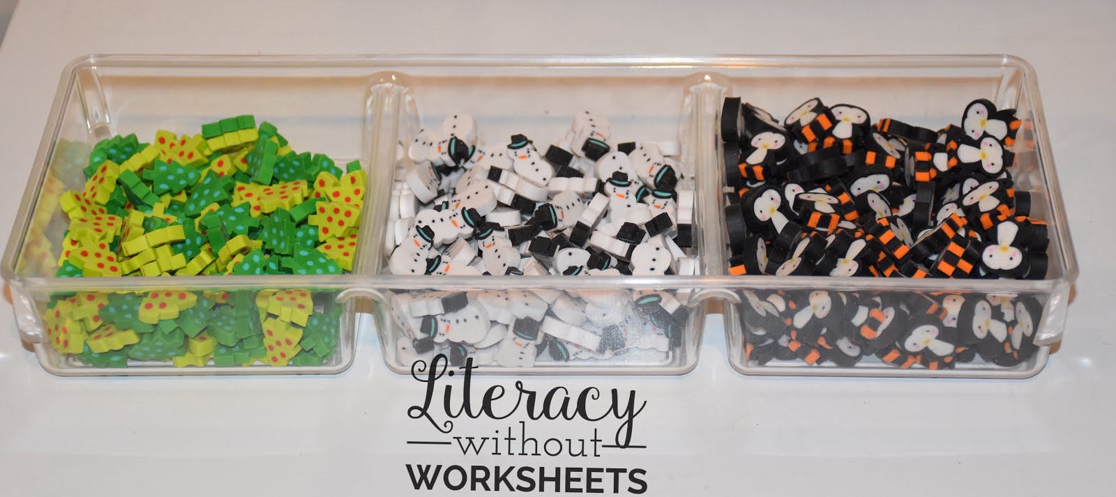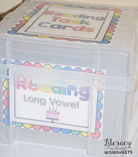 I like using small Sterilite containers with snap lids to store manipulatives. They are easy to store and stack!